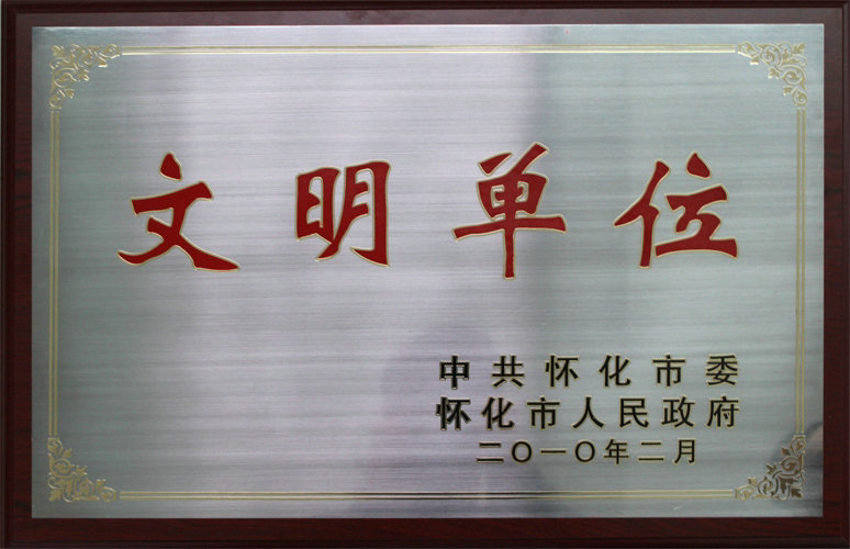 2010年2月公司被中共懷化市委、市人民政府評為“文明單位”
